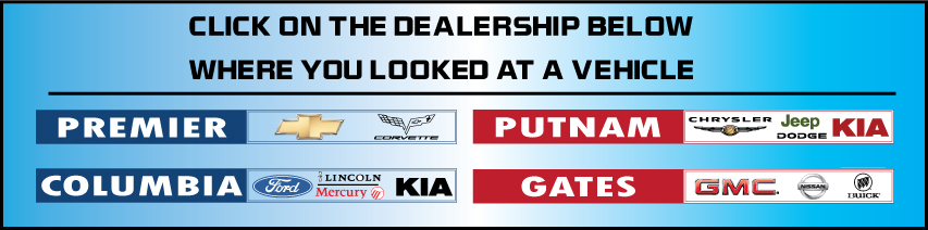 Home | Columbia Ford KIA | Gates GMC Buick Nissan | Premier Chevrolet | Putnam Chrysler Dodge Jeep Kia